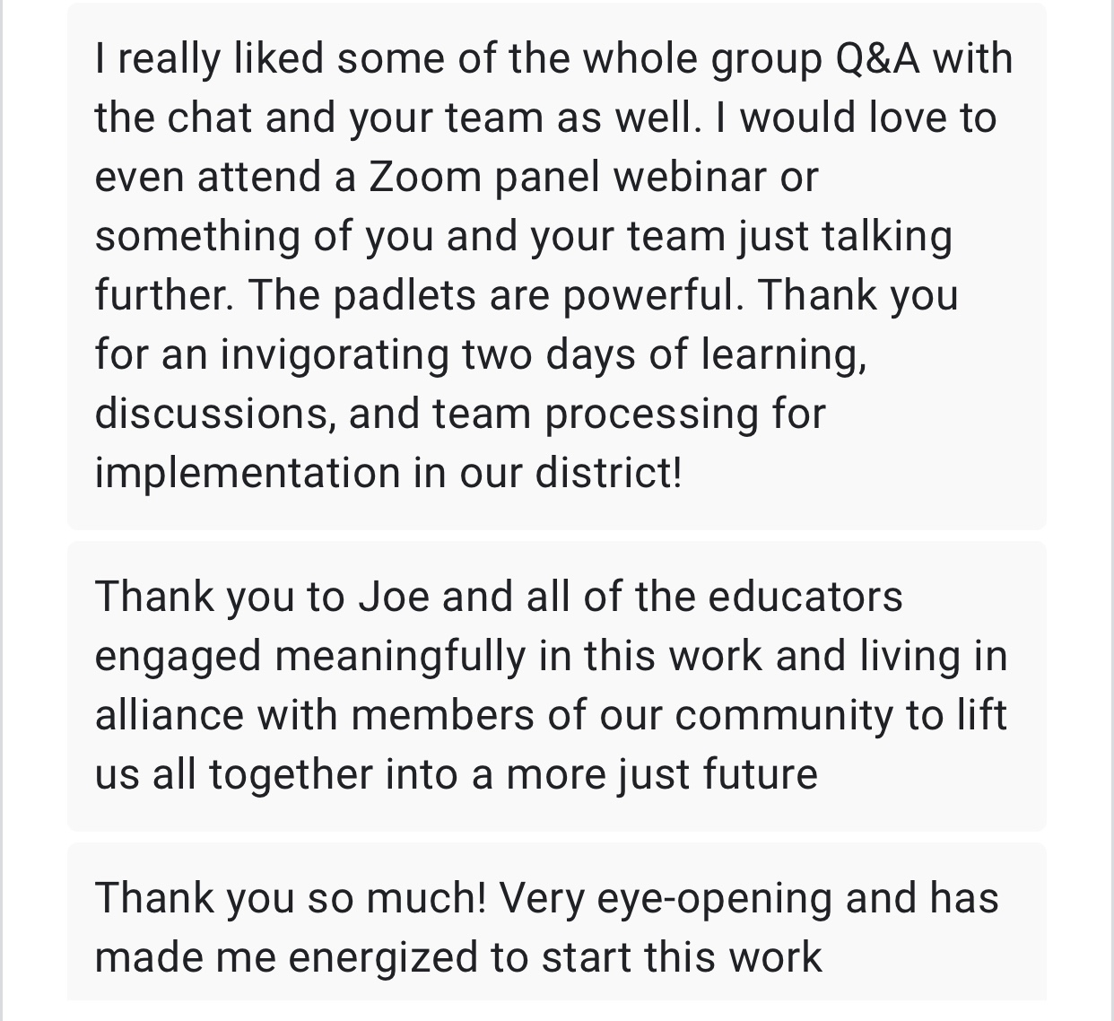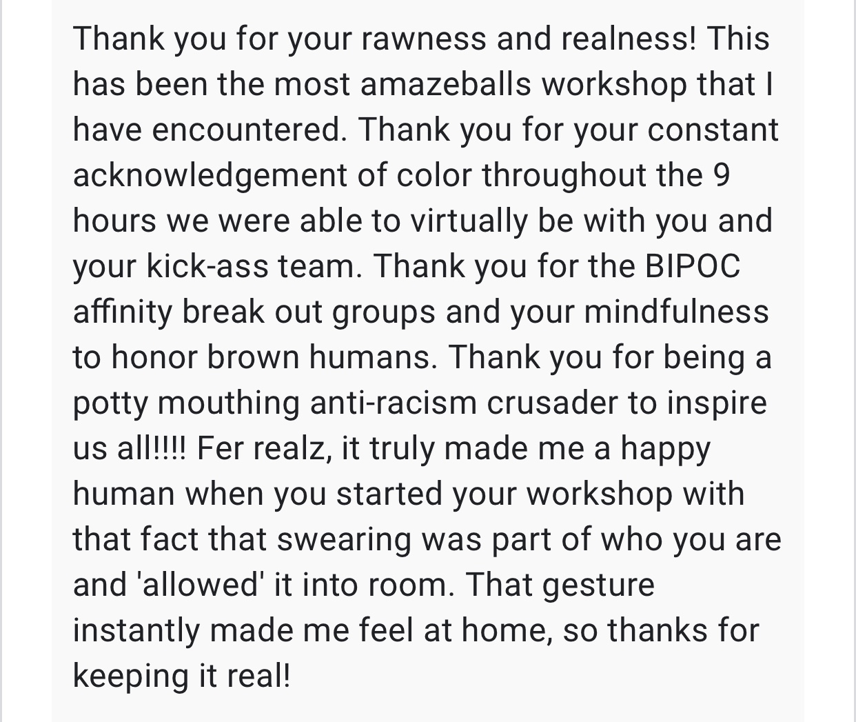 This is not your mom’s mandatory online diversity training. Miss me with the boring powerpoints and superficial conversations. White fragiles and self-righteous folks of color are not allowed, but brave and vulnerable educators are mos def encouraged to apply. We all have work to do, me too.