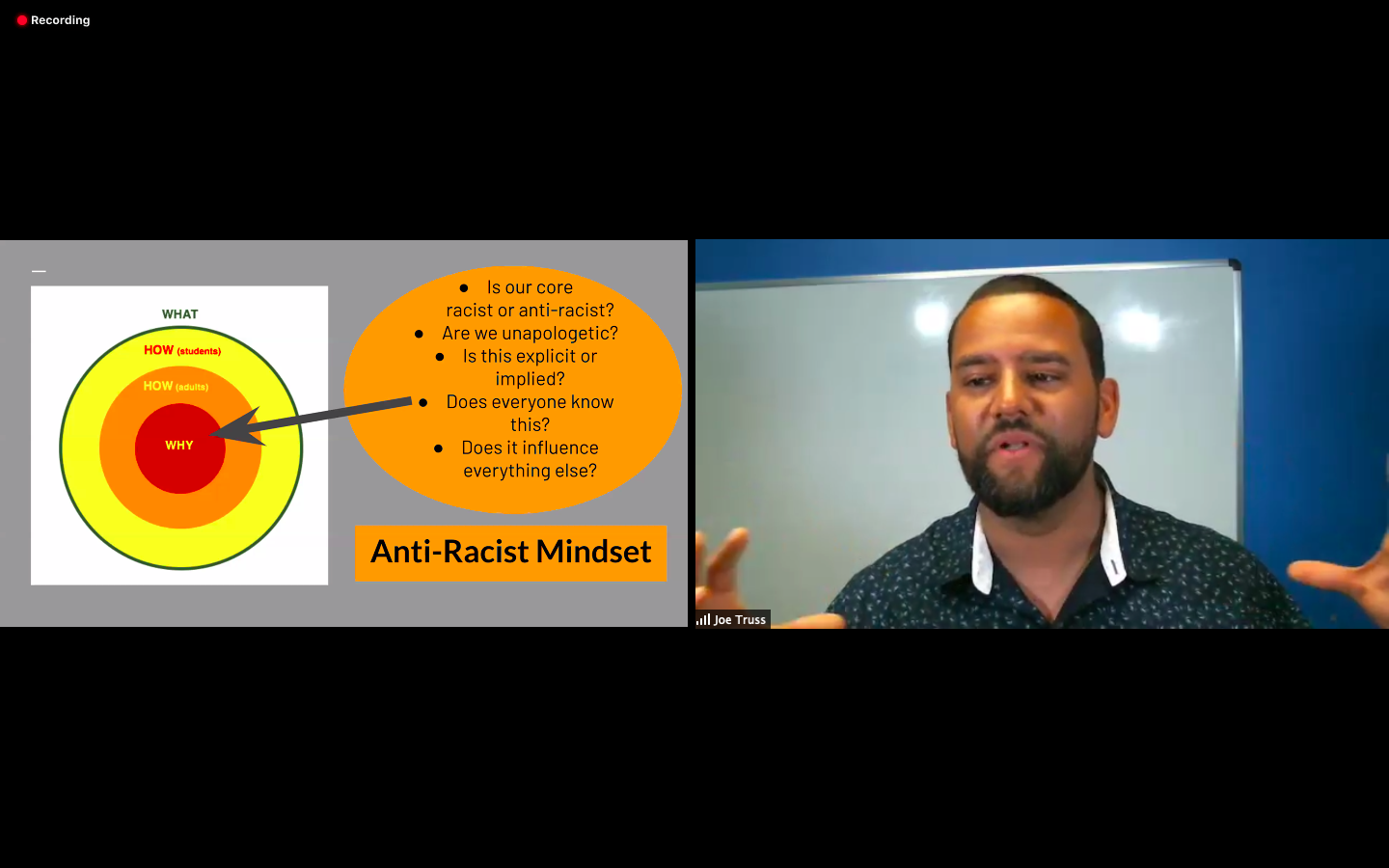 We will use virtual discussions (in racial affinity, and across difference) as well as strategic planning to build antiracist schools. As a previous Middle School Principal, I will also share reflections, lessons learned, and possible pitfalls when leading this work in schools.